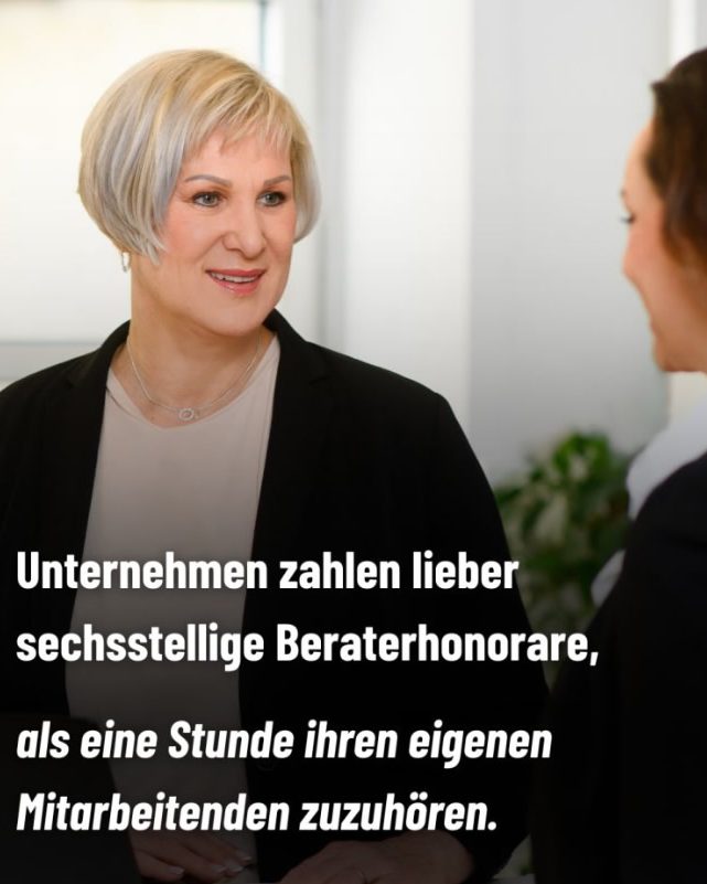 ... als eine Stunde ihren eigenen Mitarbeitern zuzuhören. In Krisen holen sich Unternehmen oft externe Berater, statt zuerst ihre eigenen Mitarbeiter einzubeziehen.